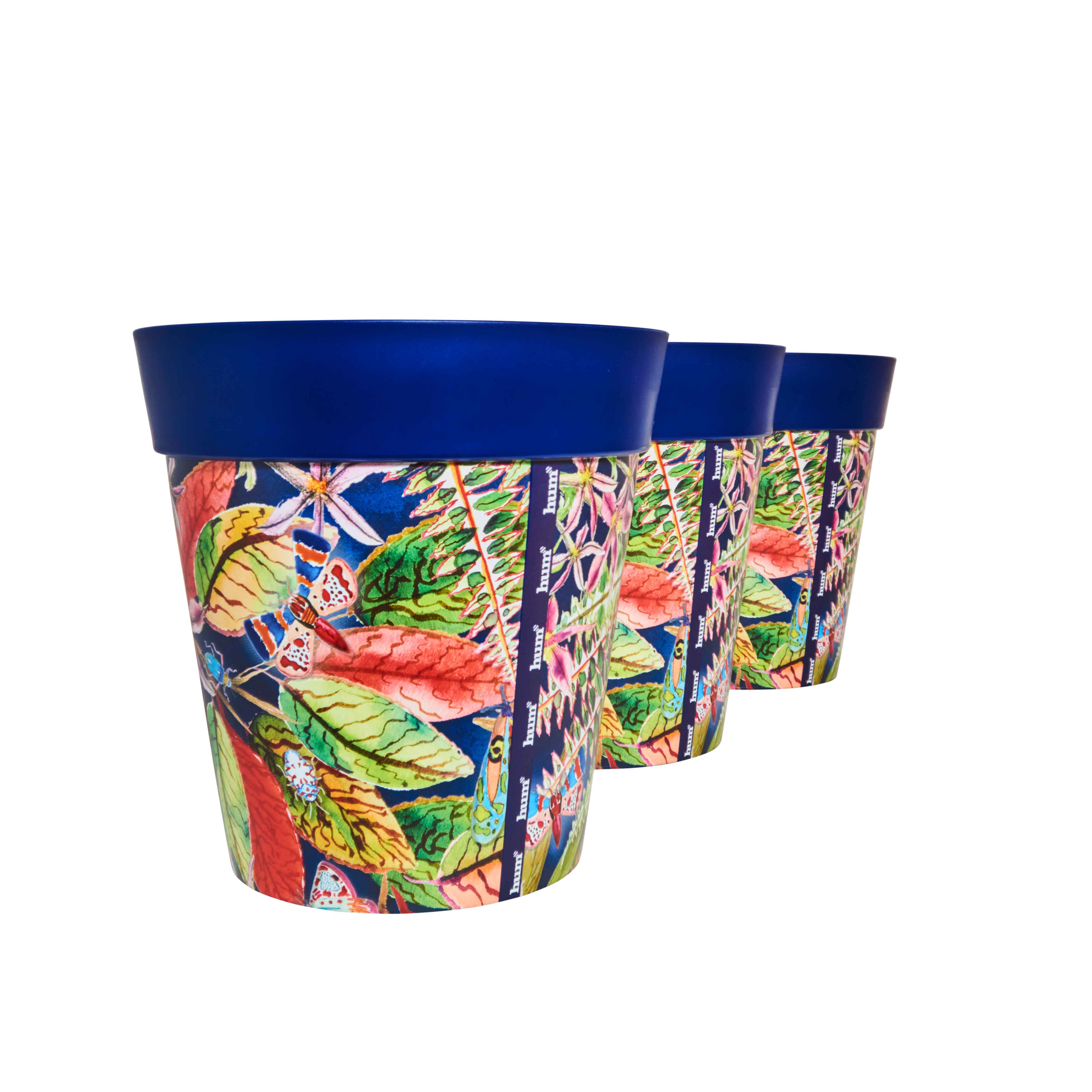 Set of 3 Plastic Blue Leaves & Butterflies Indoor/Outdoor Pots 22cm x 22cm
