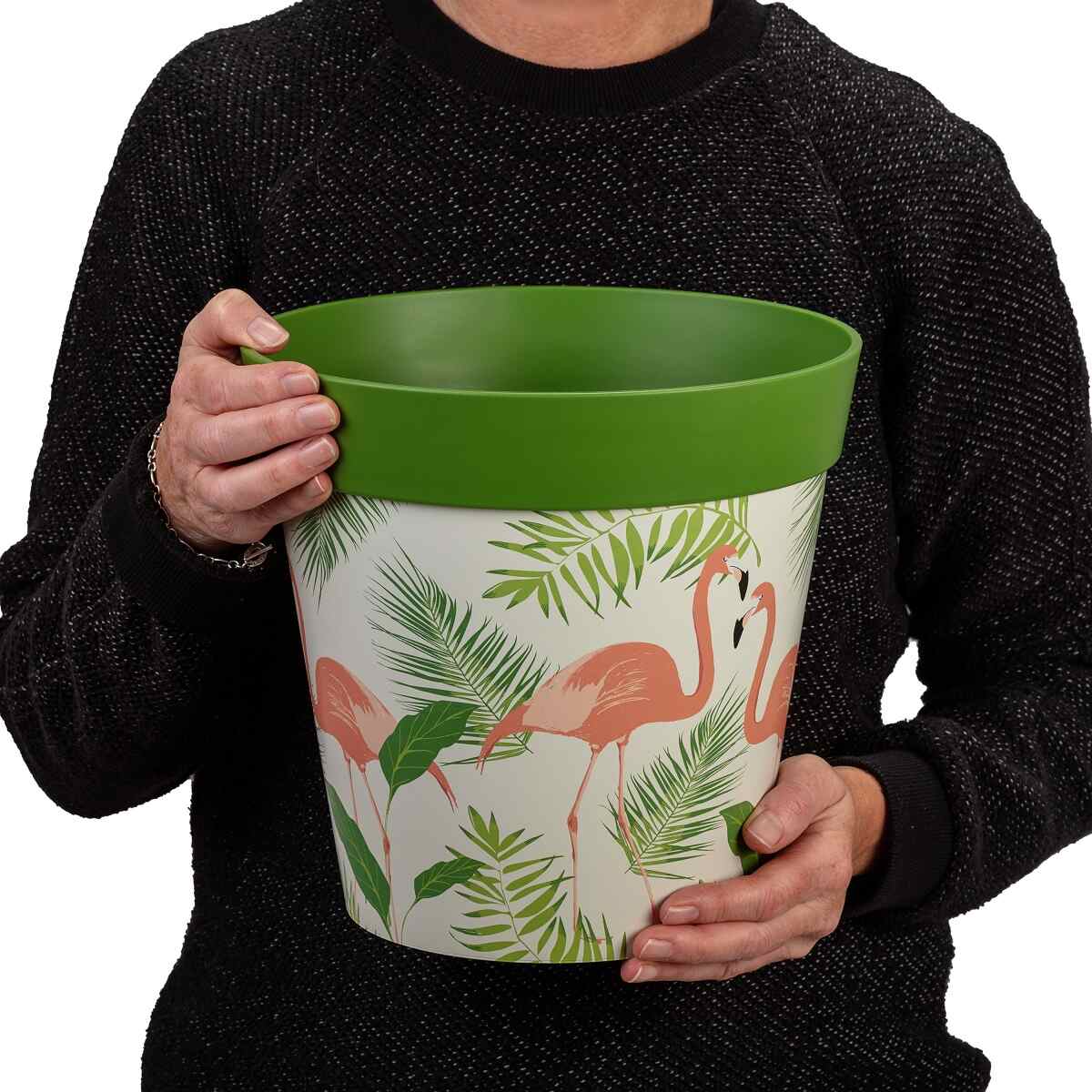Set of 3 Large Plastic Green Flamingo Indoor/Outdoor Pots 25cm x 25cm