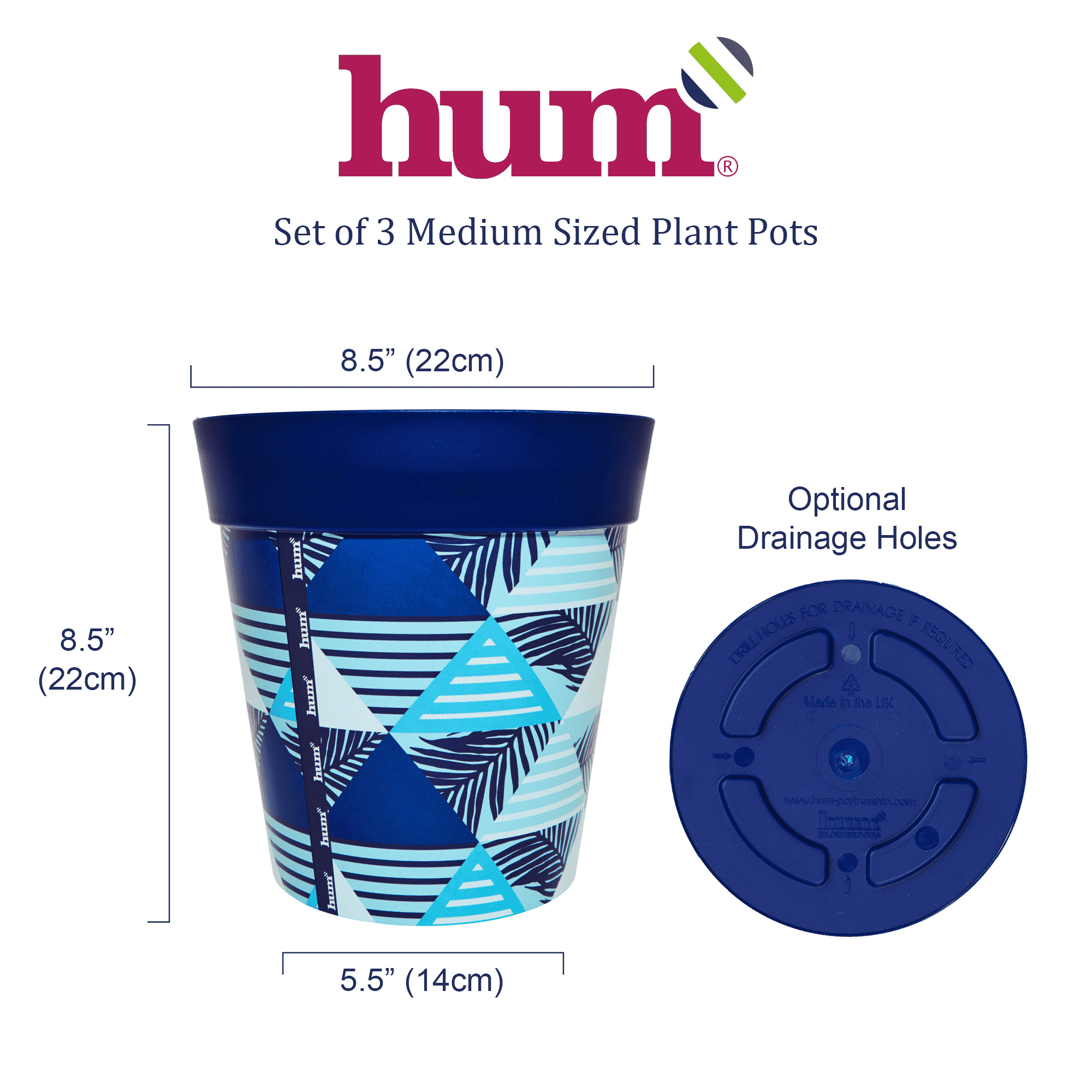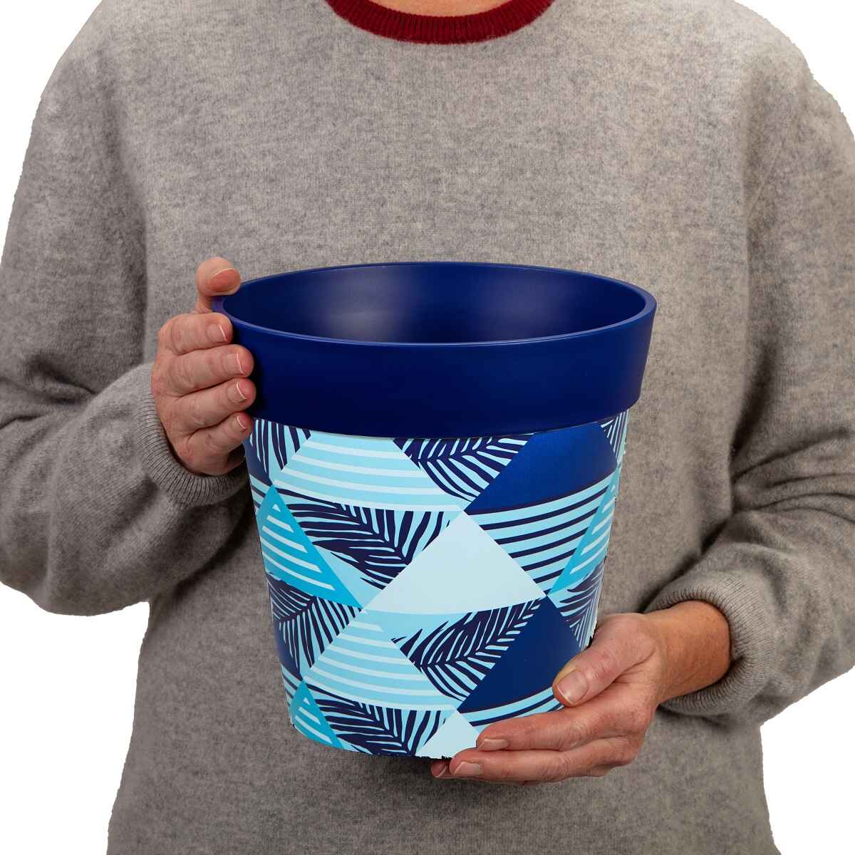 Set of 3 Plastic Blue Geometric Indoor/Outdoor Pots 22cm x 22cm