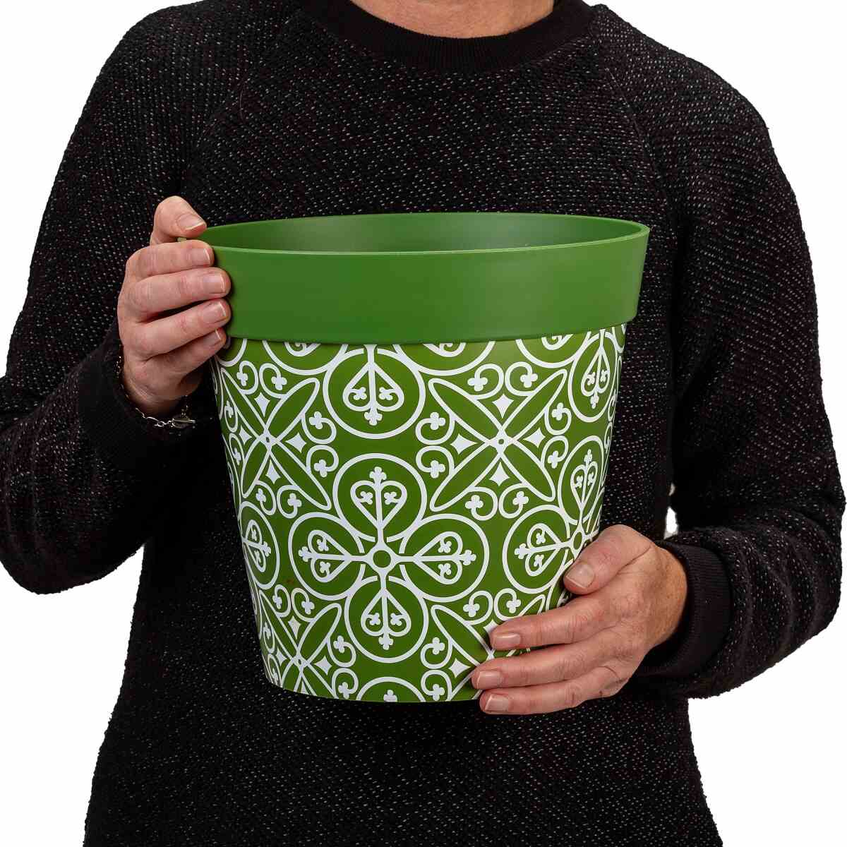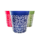 Set of 3 Large Plastic Multicoloured Maroc Tile Indoor/Outdoor Pots 25cm x 25cm