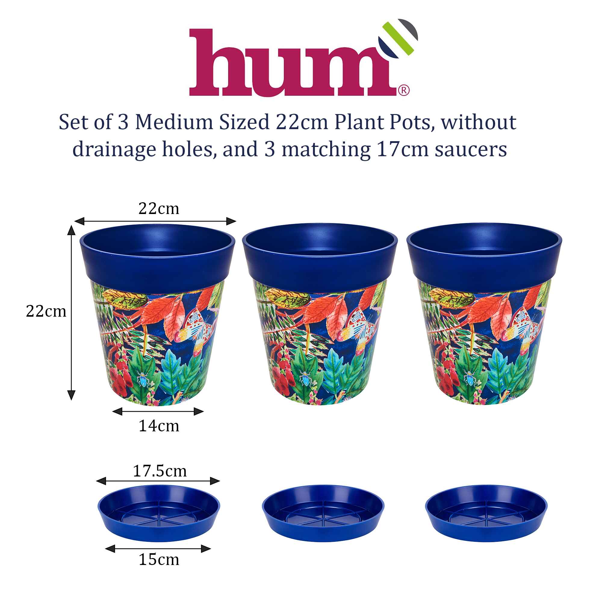 - SET OF THREE PLASTIC PLANT POTS WITH SAUCERS: Height 22cm, diameter 22cm (8.5” x 8.5”) perfect for medium size plants, herbs or flowers.