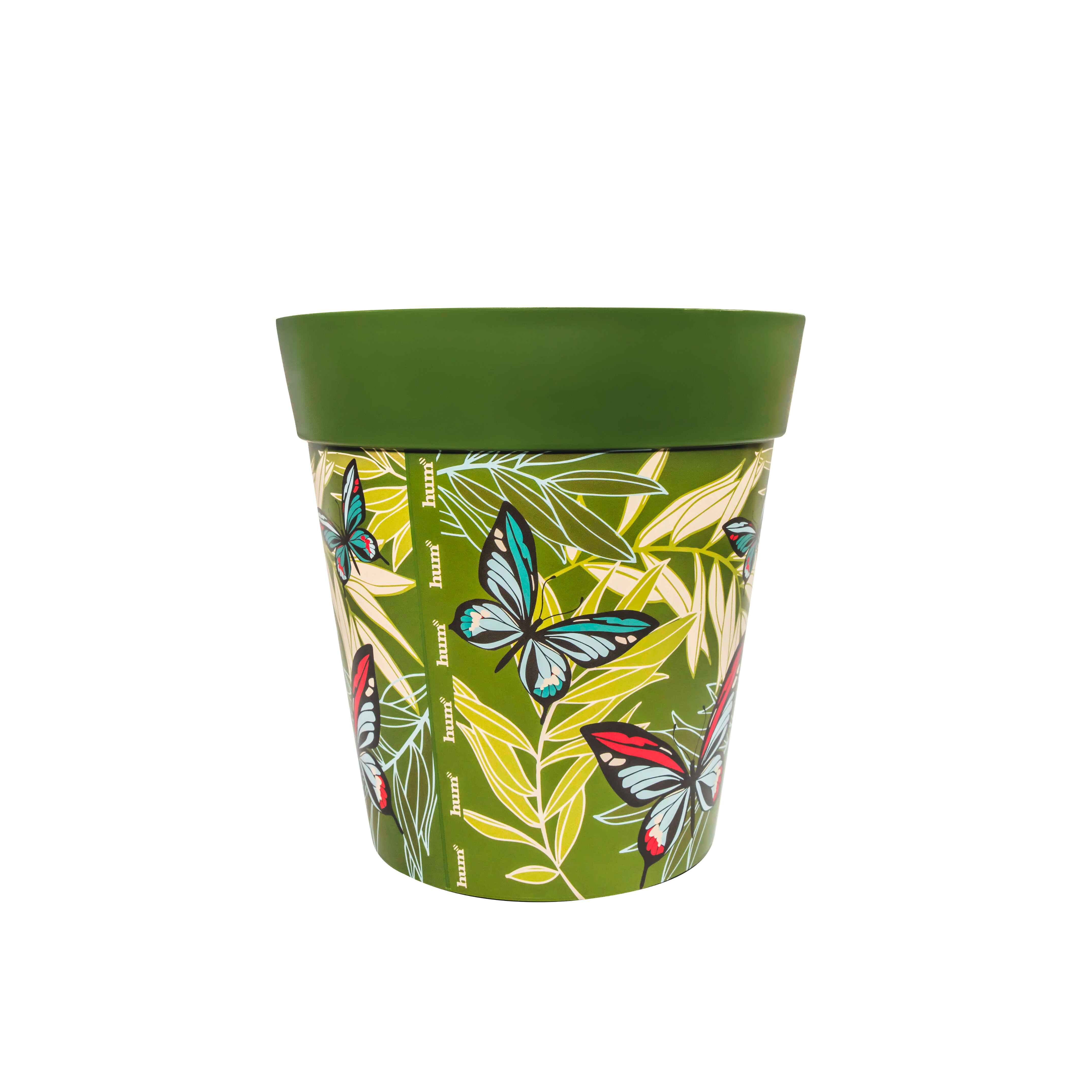 Grüner Kunststoff-Palmen-Schmetterlingsmuster, mittelgroß, 22 cm, Topf für drinnen und draußen