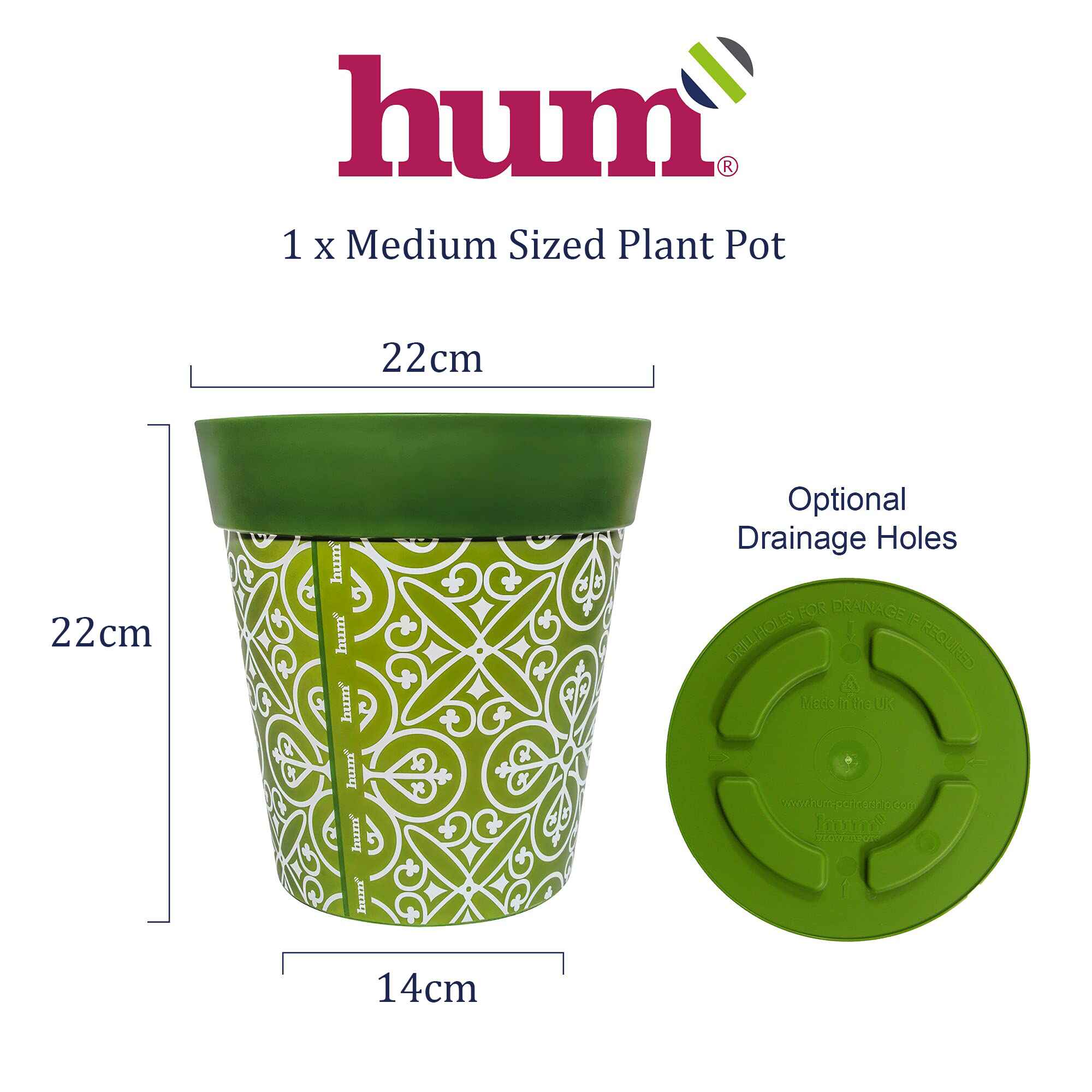 Grüner Kunststoff Maroc Tile Medium 22cm Topf für drinnen und draußen
