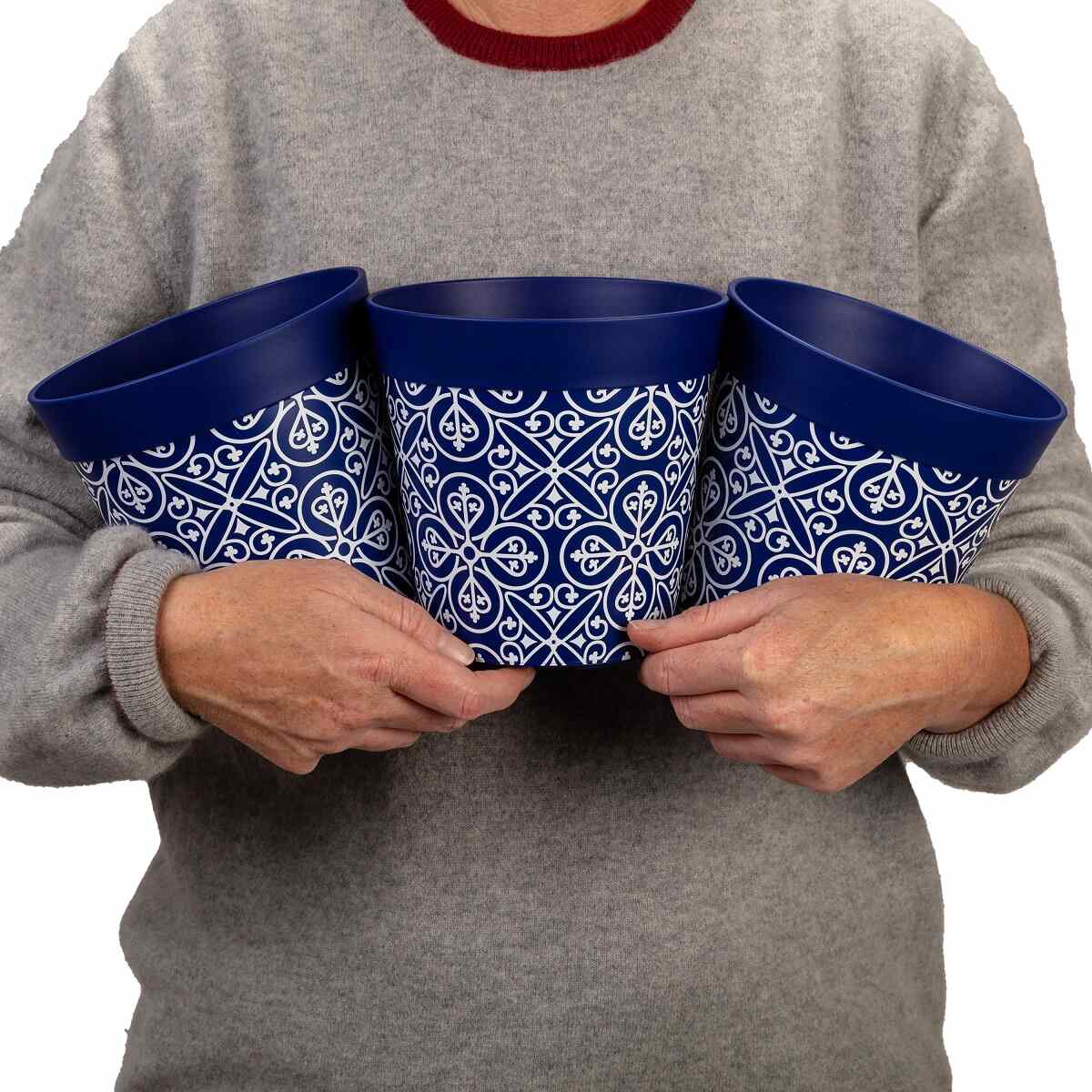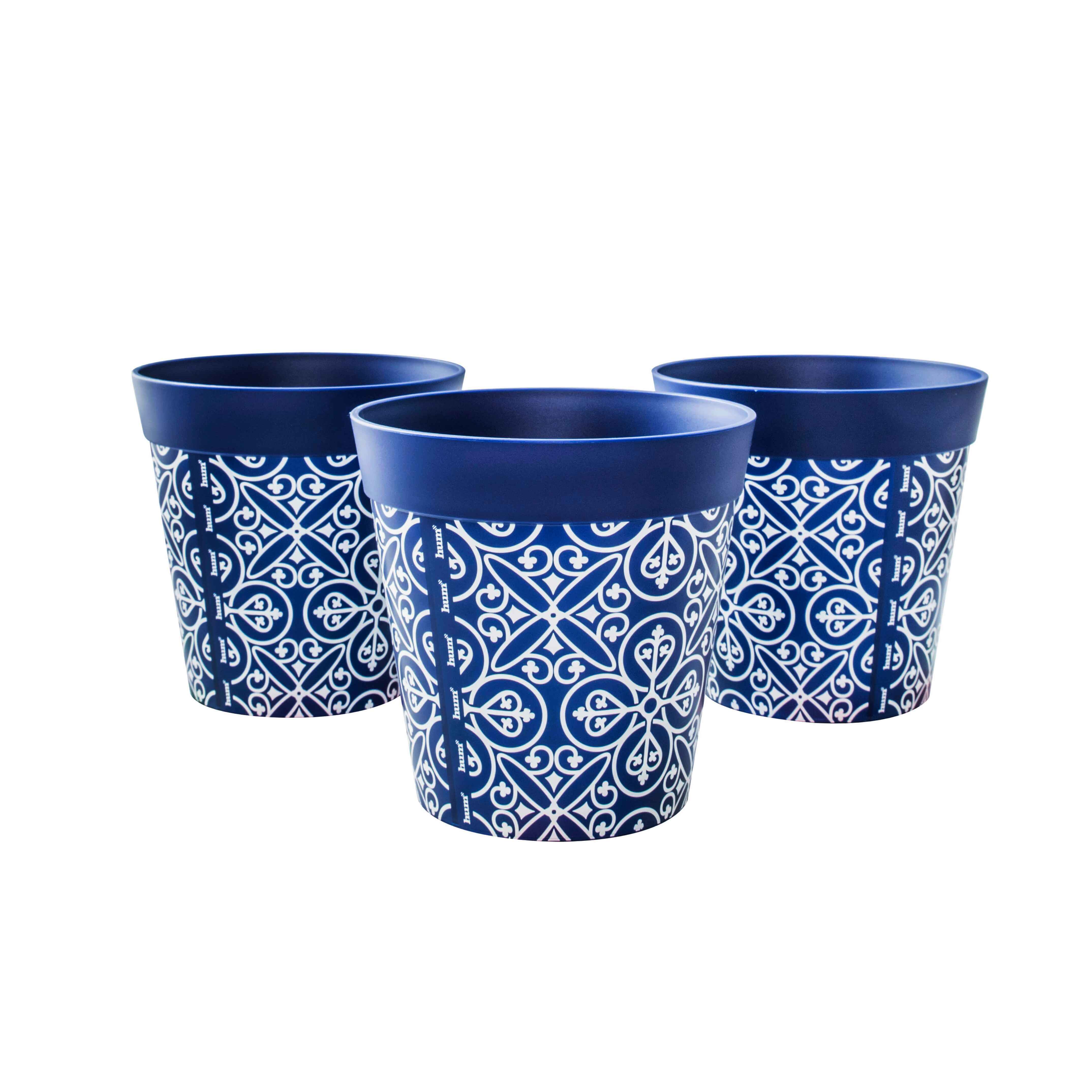 Set mit 3 kleinen blauen Kunststofftöpfen mit marokkanischen Fliesen, 15 cm