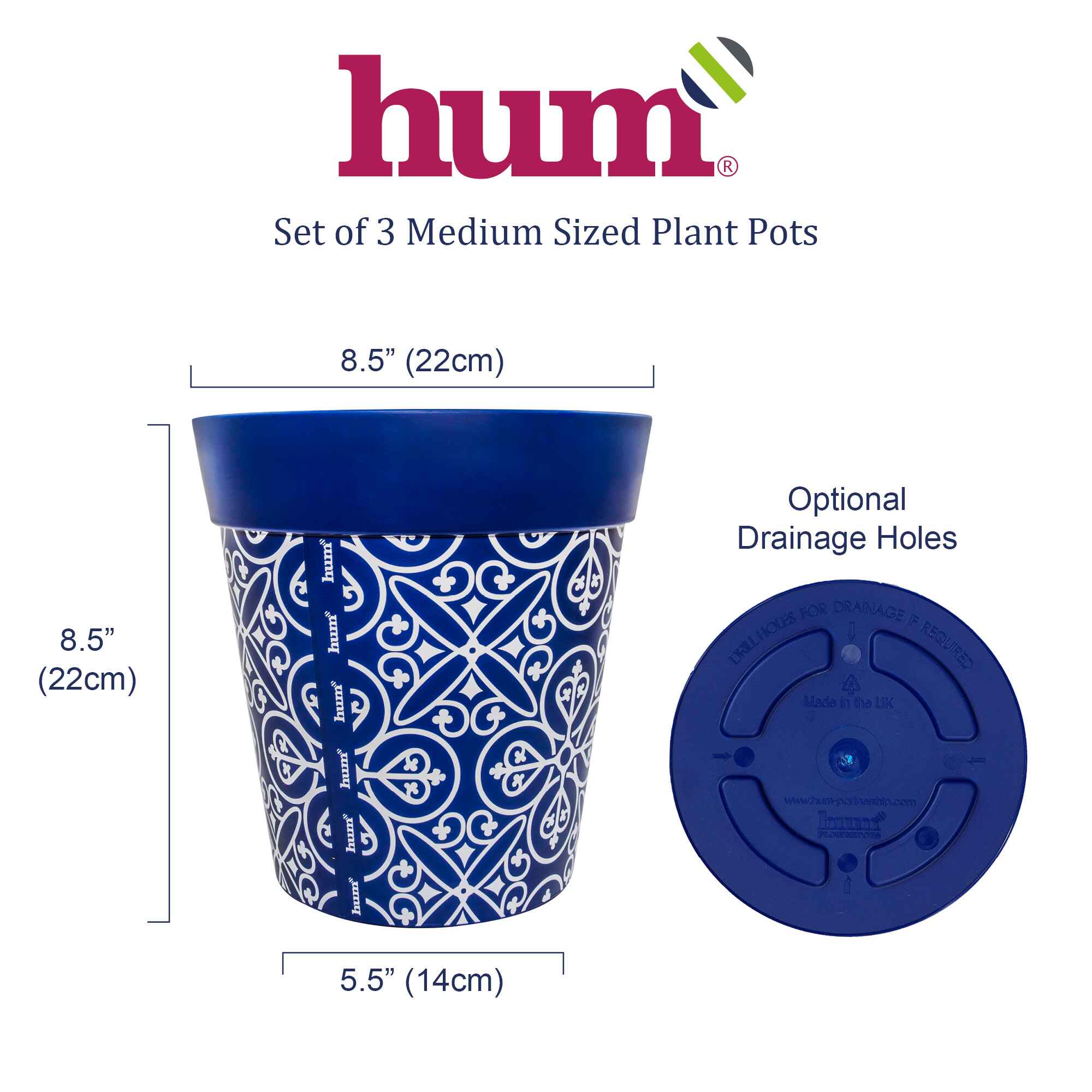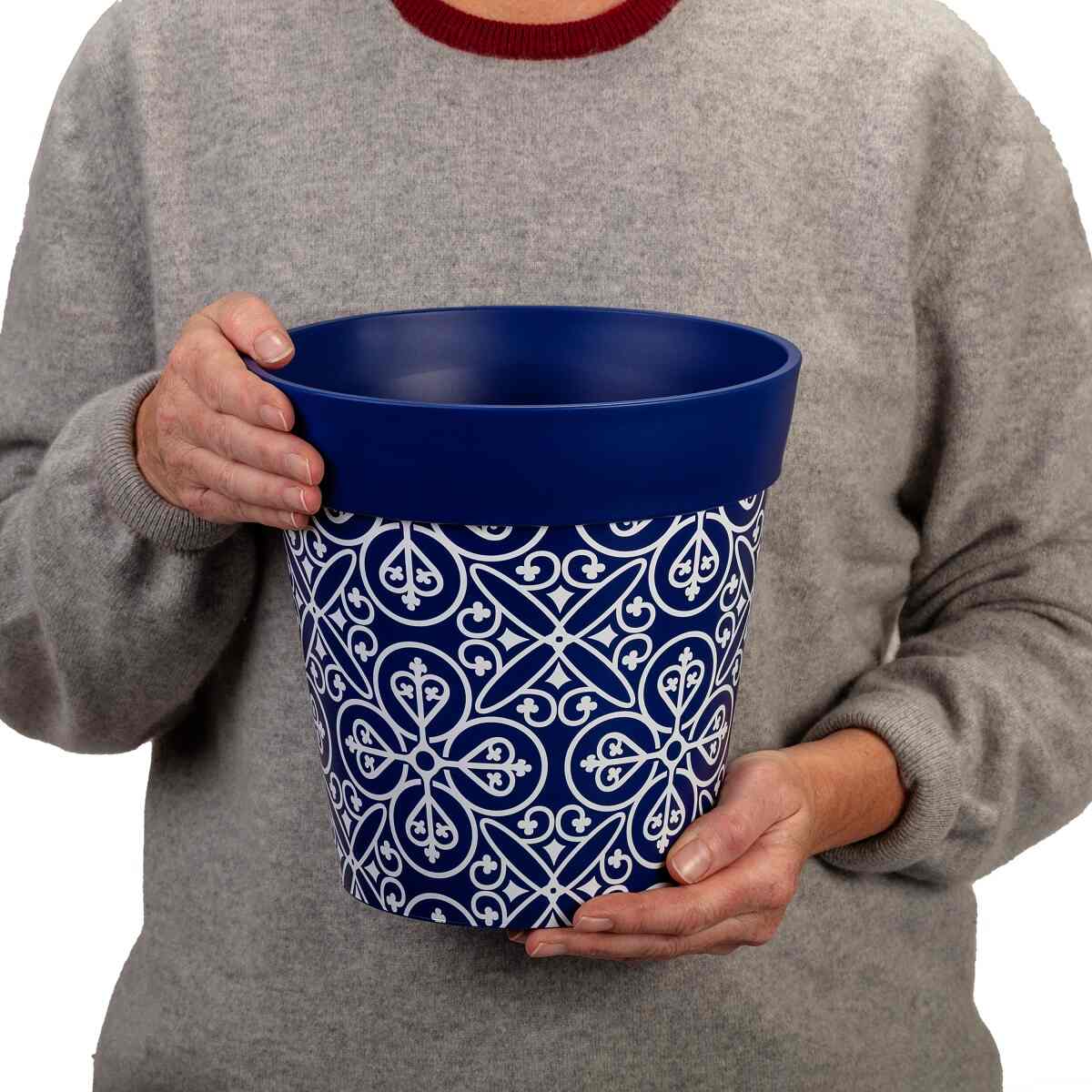 3er-Set, blaue Kunststoff-Töpfe „Maroc Tile“ 22 cm, für drinnen und draußen