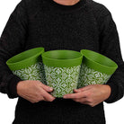 Set mit 3 kleinen grünen Kunststofftöpfen mit marokkanischen Fliesen, 15 cm