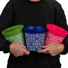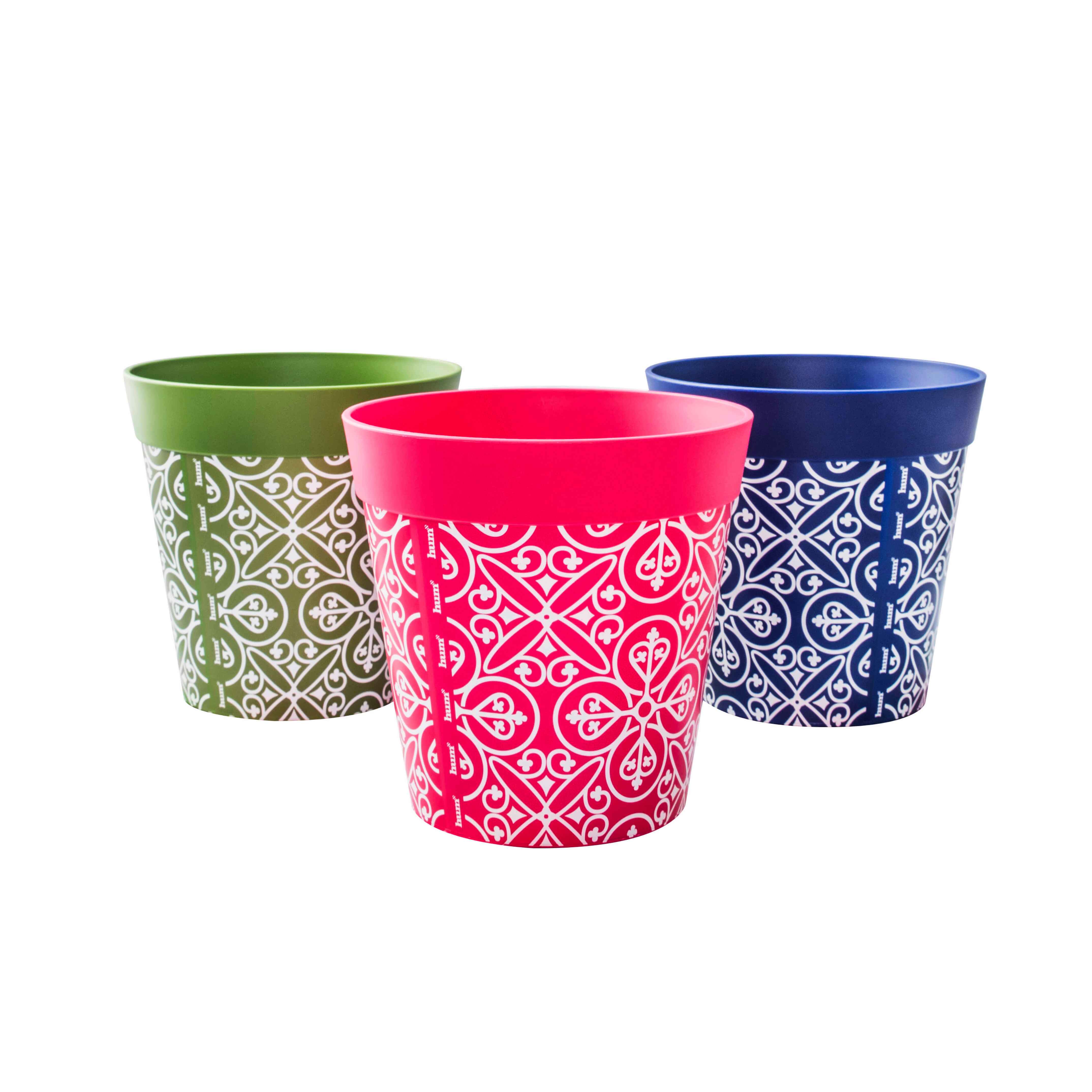 Set mit 3 kleinen Kunststofftöpfen mit mehrfarbigem marokkanischen Fliesenmuster, 15 cm