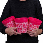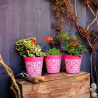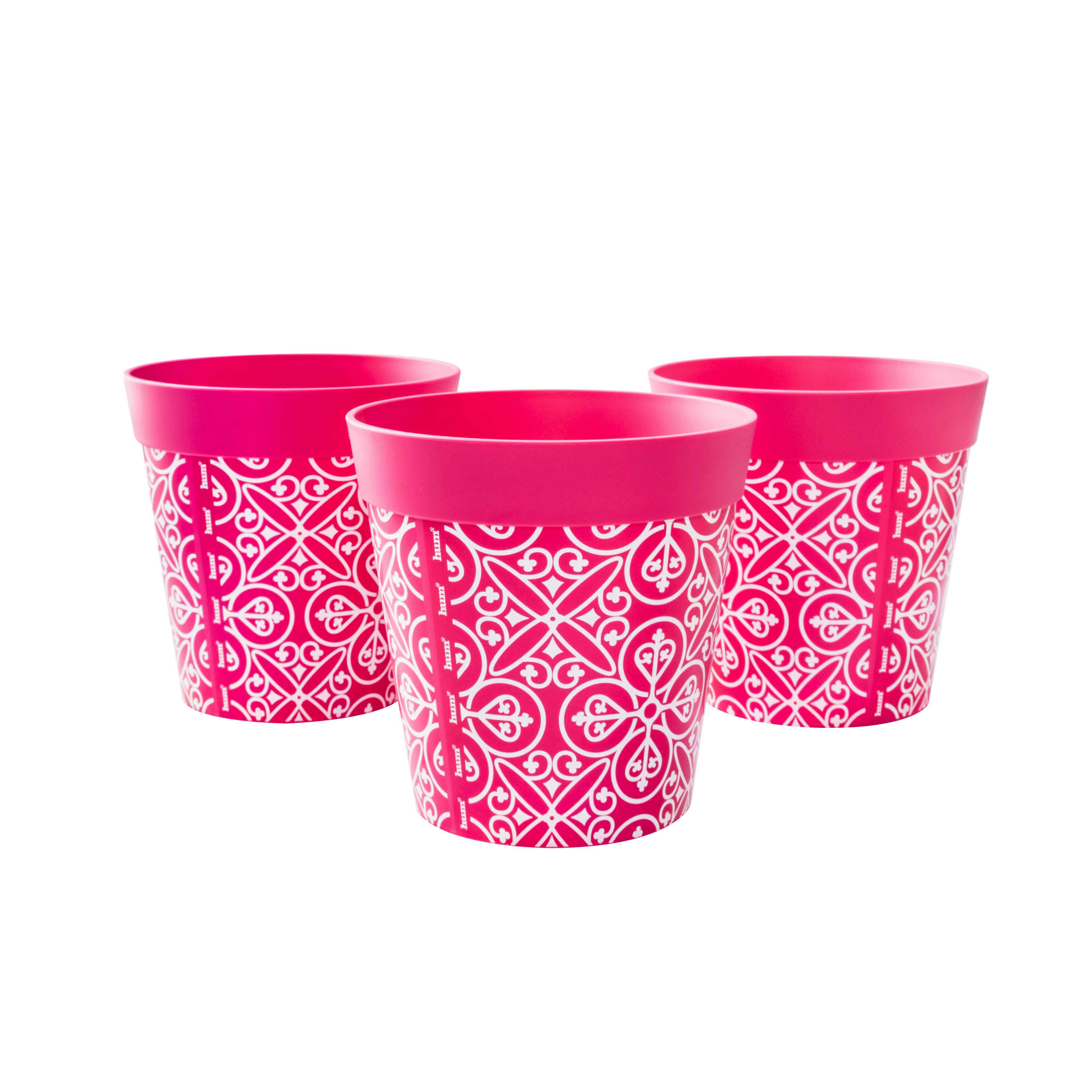 Set mit 3 kleinen rosa Kunststofftöpfen mit marokkanischen Fliesen, 15 cm