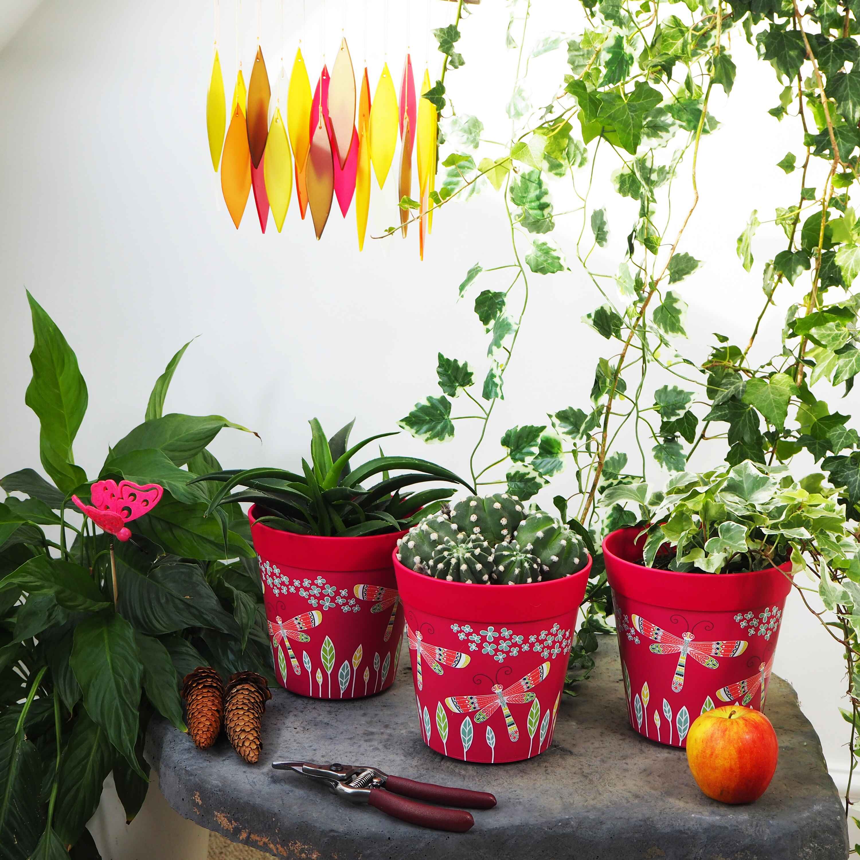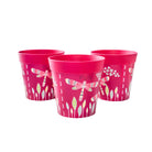 Set mit 3 Plastiktöpfen für drinnen und draußen, Größe 15 cm, Libelle, rosa