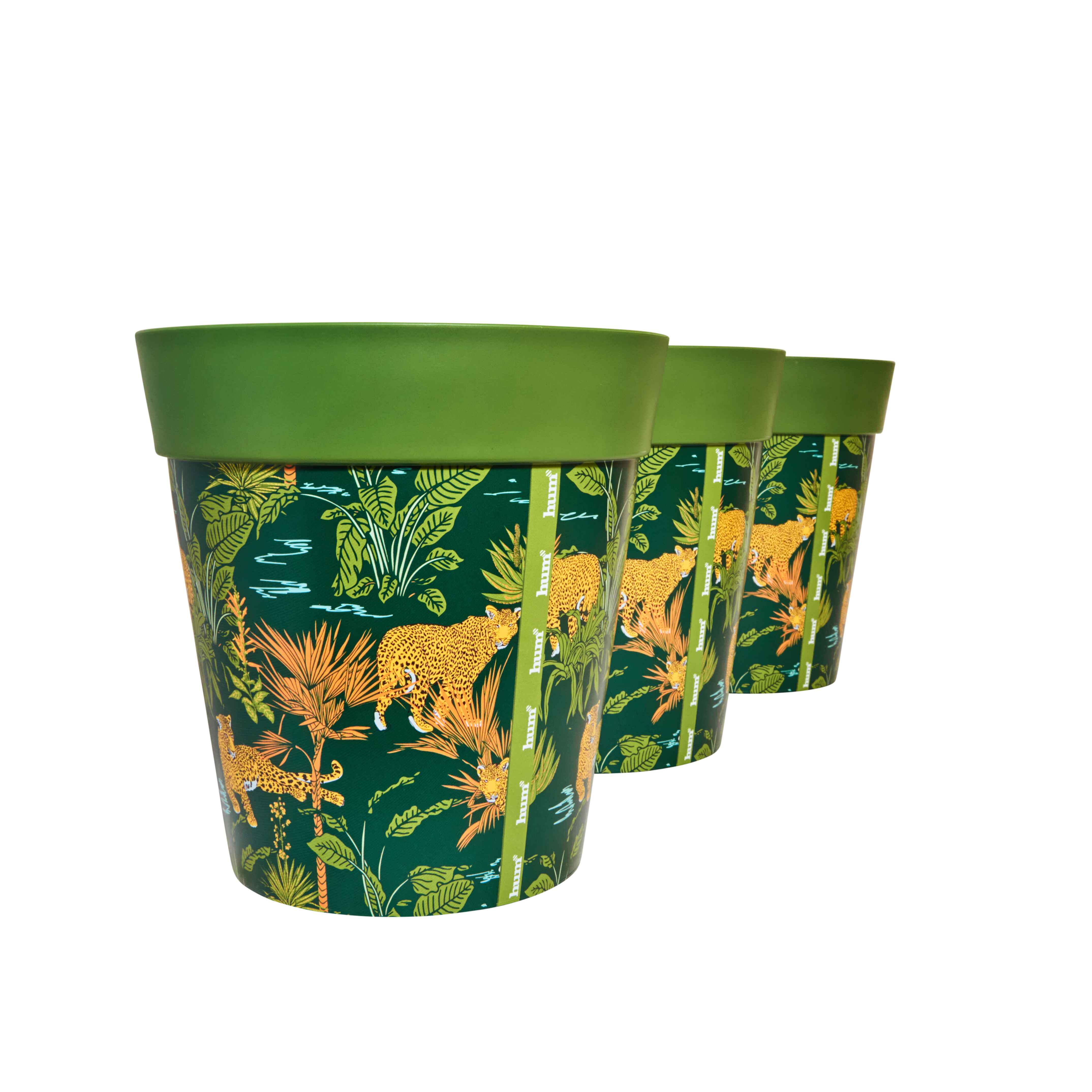 Set mit 3 Kunststofftöpfen „Dschungelleoparden“ für drinnen und draußen, 22 x 22 cm