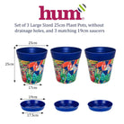 Kombinationsset mit 3 Kunststofftöpfen mit blauen Blättern, 25 cm, mit Untertassen