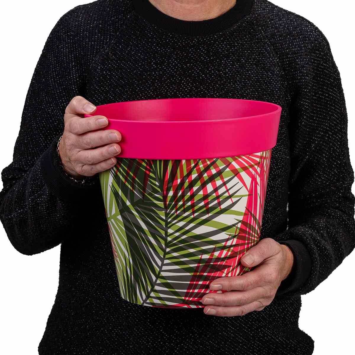 Lot de 3 grands pots en plastique pour intérieur/extérieur, feuilles de palmier roses, 25 cm x 25 cm